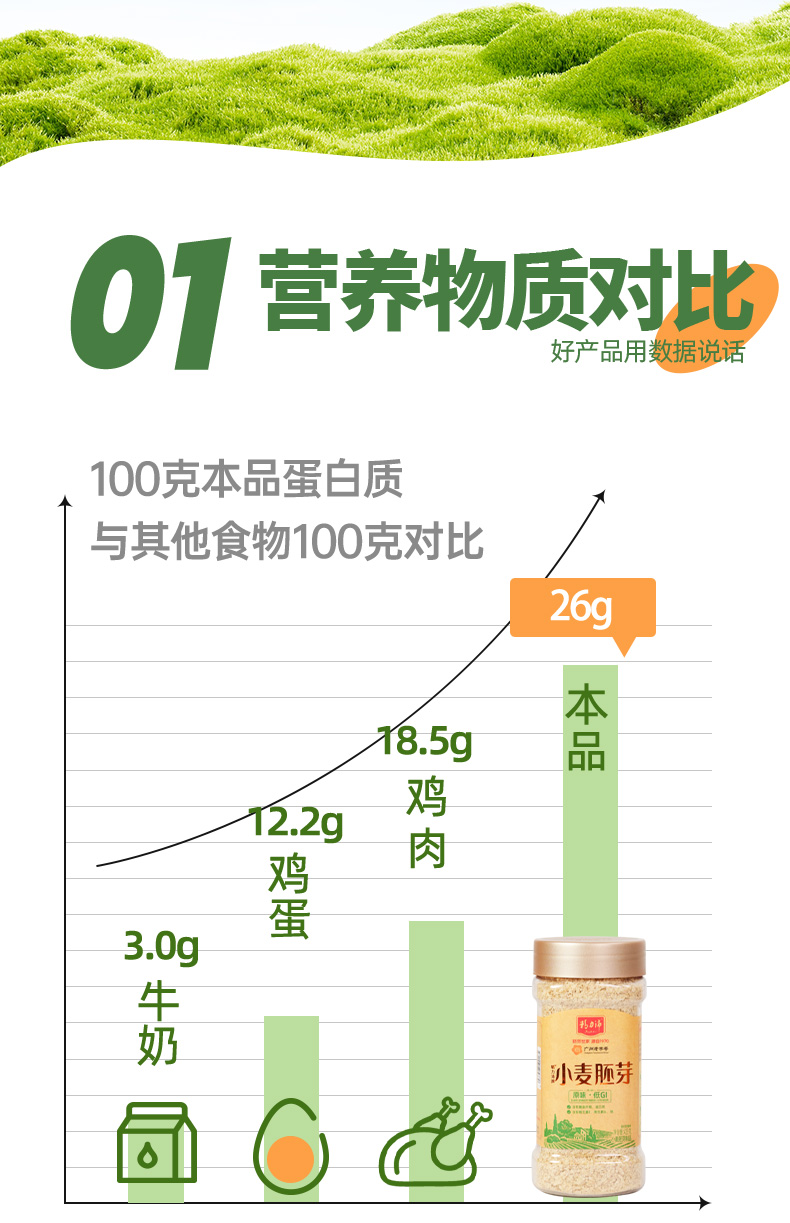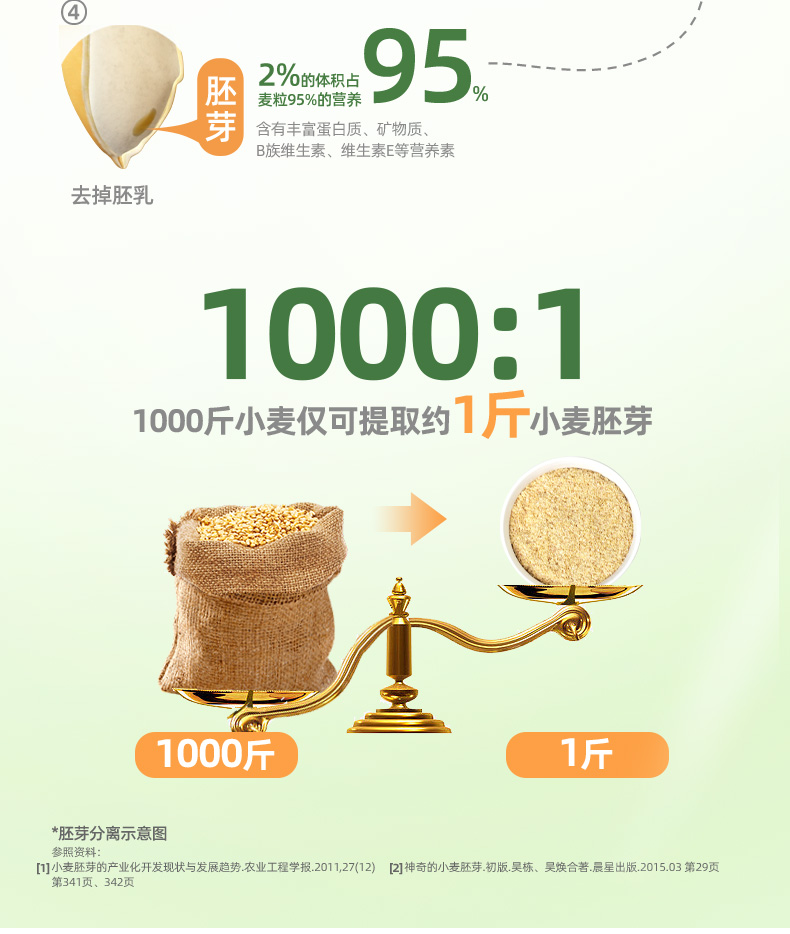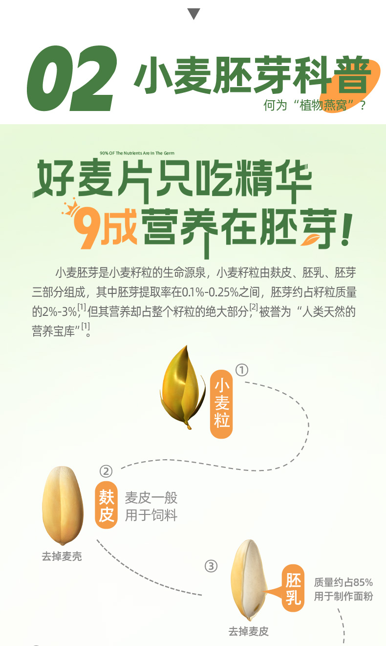 ★ 1000斤优质小麦仅可提取约1斤小麦胚芽 ★ 加拿大进口小麦 (非转基因)提取小麦胚芽 ★ 蛋白质≥30% 约是牛奶的10倍