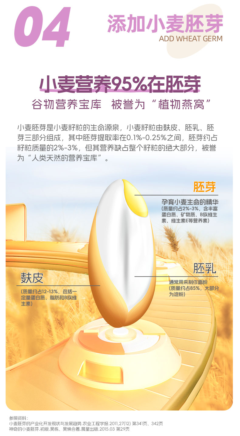 ★ 1000斤优质小麦仅可提取约1斤小麦胚芽 ★ 加拿大进口小麦 (非转基因)提取小麦胚芽 ★ 膳食纤维≈42%,蛋白质≈18% ★ 添加山药、紫薯