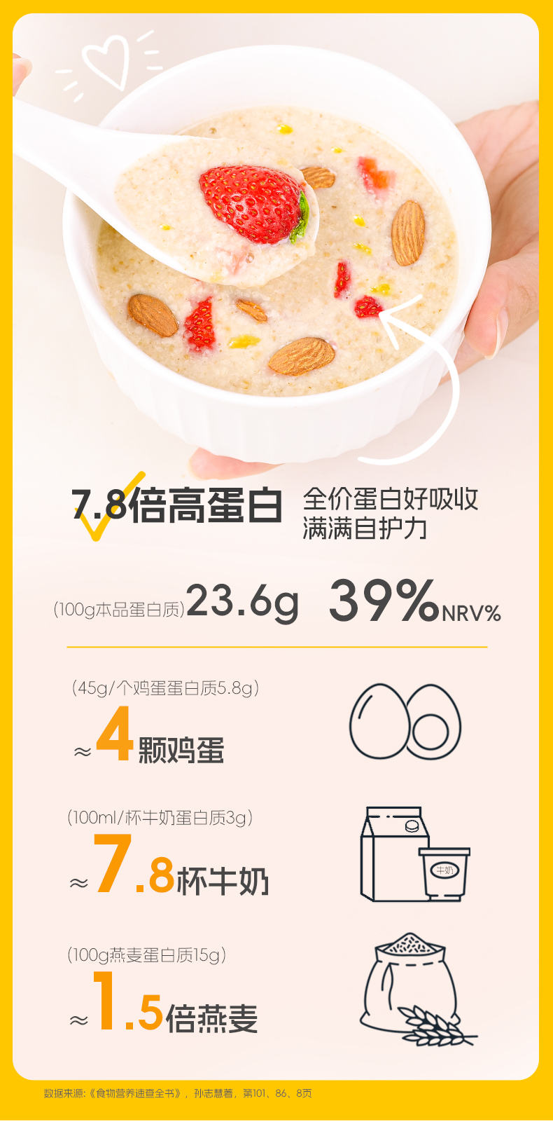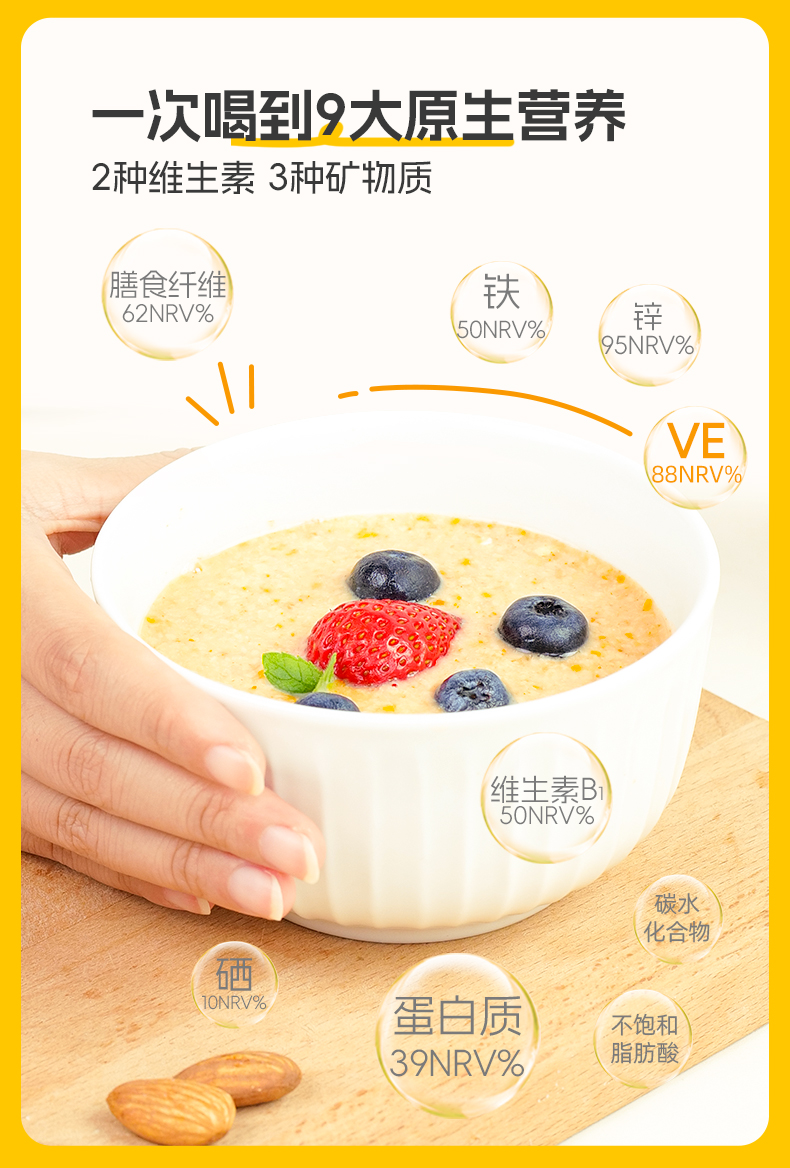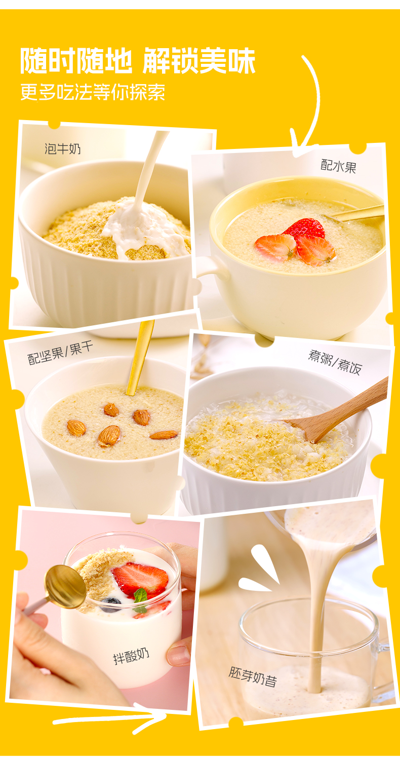 ★ 1000斤优质小麦仅可提取约1斤小麦胚芽 ★ 加拿大进口小麦 (非转基因)提取小麦胚芽 ★ 蛋白质≥30% 约是牛奶的10倍 ★ 富硒 NRV%≥80% 约是燕麦的9倍 ★ 维生素B6 约是燕麦的2倍 ★ 维生素E 约是燕麦的4倍 ★ 锌 约是燕麦的4倍 ★ 增加卵磷脂