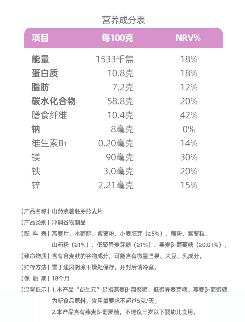 ★ 1000斤优质小麦仅可提取约1斤小麦胚芽 ★ 加拿大进口小麦 (非转基因)提取小麦胚芽 ★ 膳食纤维≈42%,蛋白质≈18% ★ 添加山药、紫薯